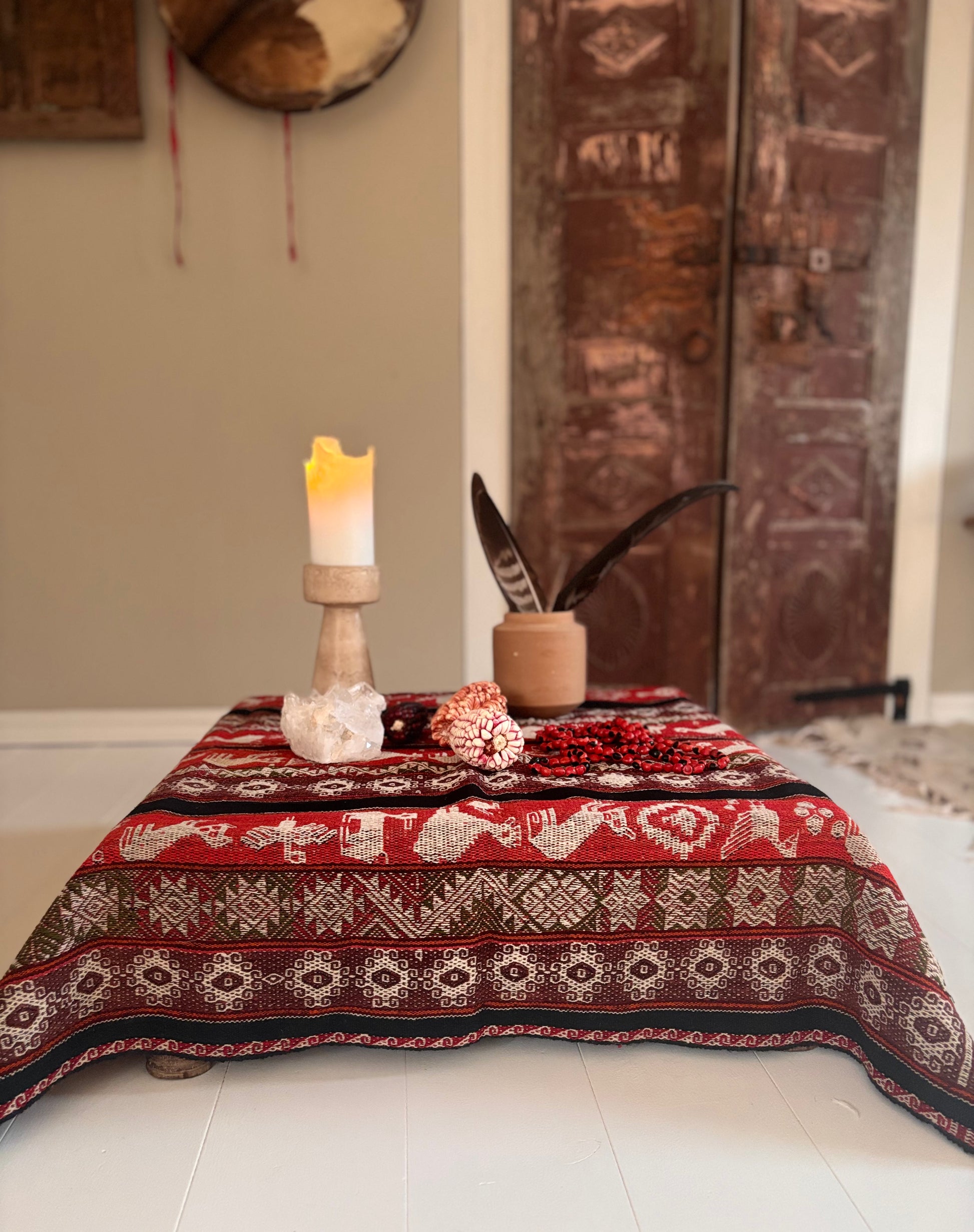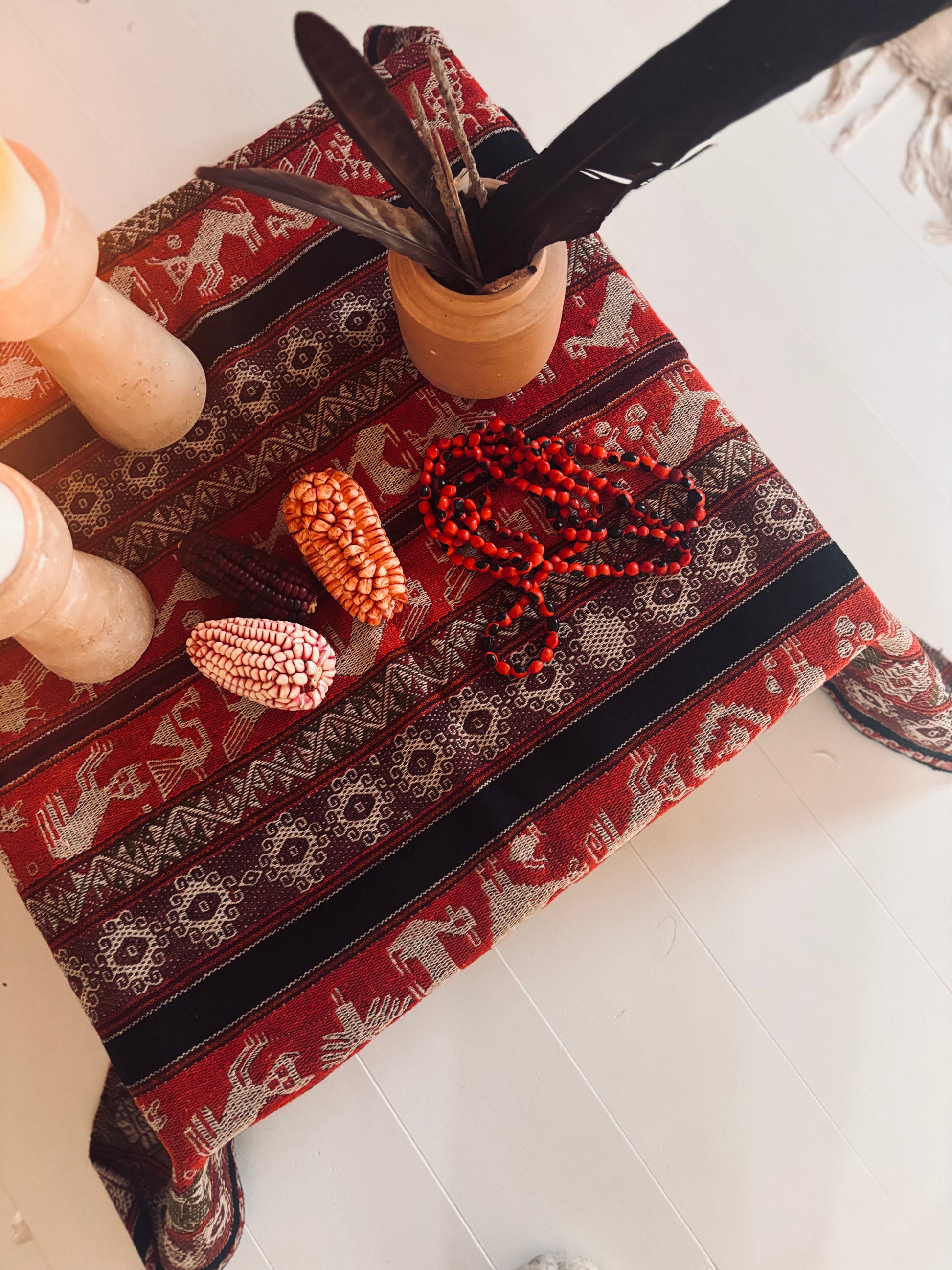 En ceremoniell duk vävd enligt uråldrig Inka-tradition. Buren av Andernas färger och symboler, skapad för ditt altare, dina ritualer och ditt heliga rum.