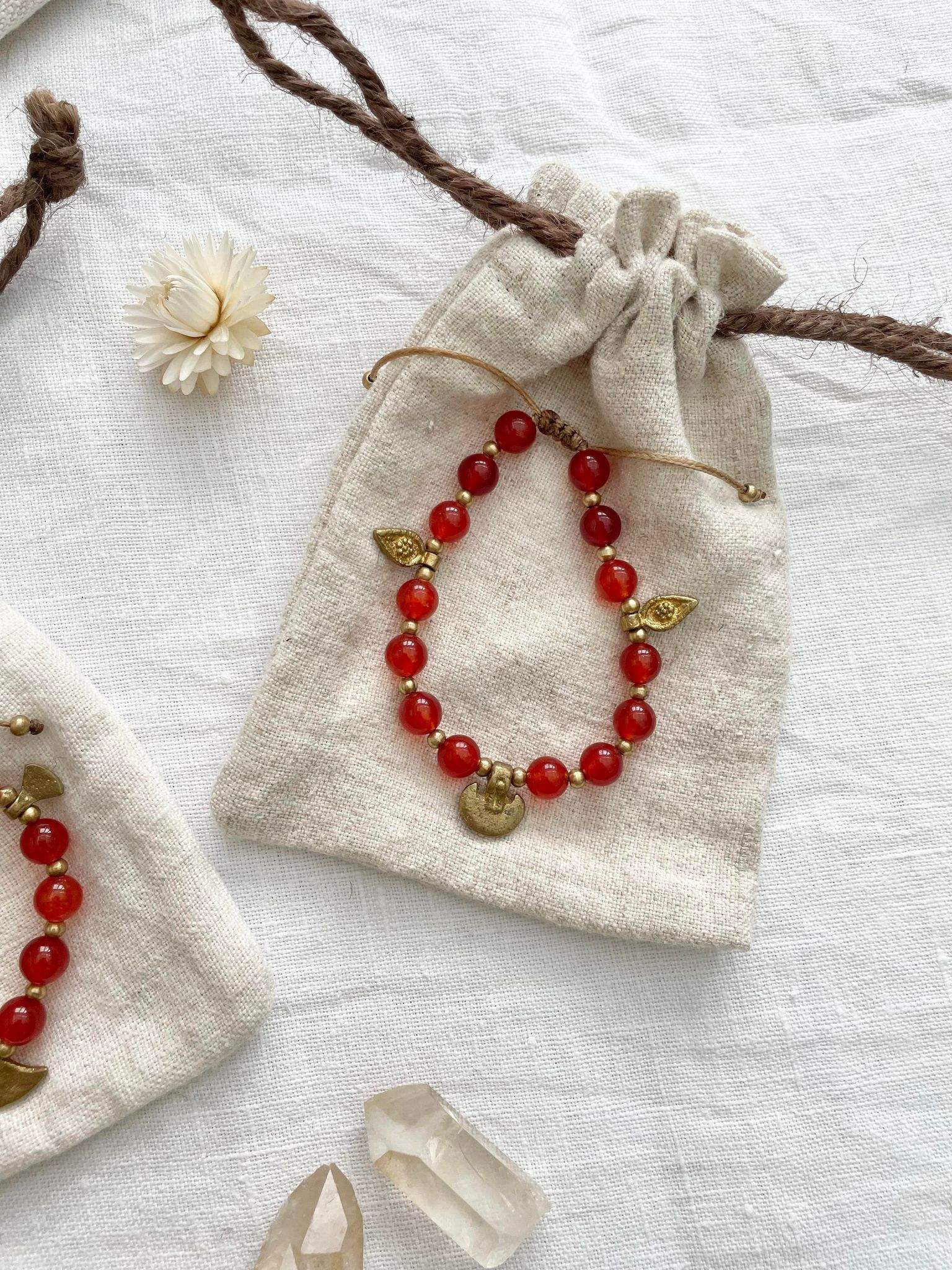 Ceremoni armband med Agat, mässingspärlor samt smycke i mässing