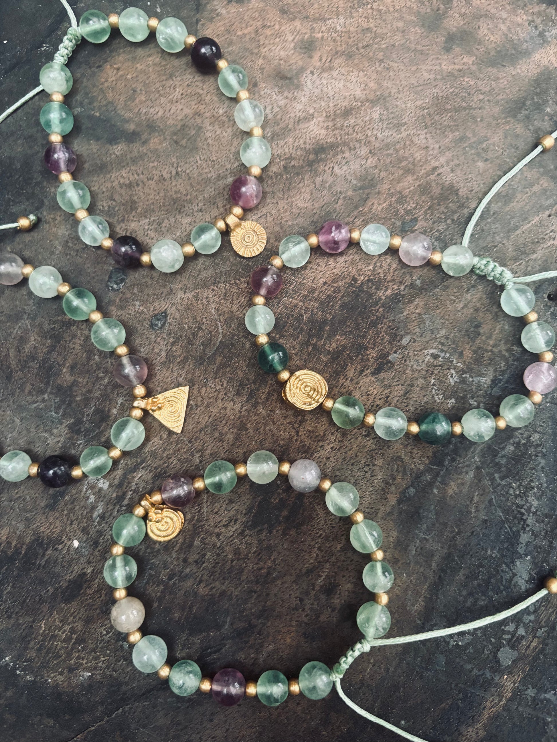 Ceremoni armband med Fluorit, mässingspärlor samt smycke i mässing.