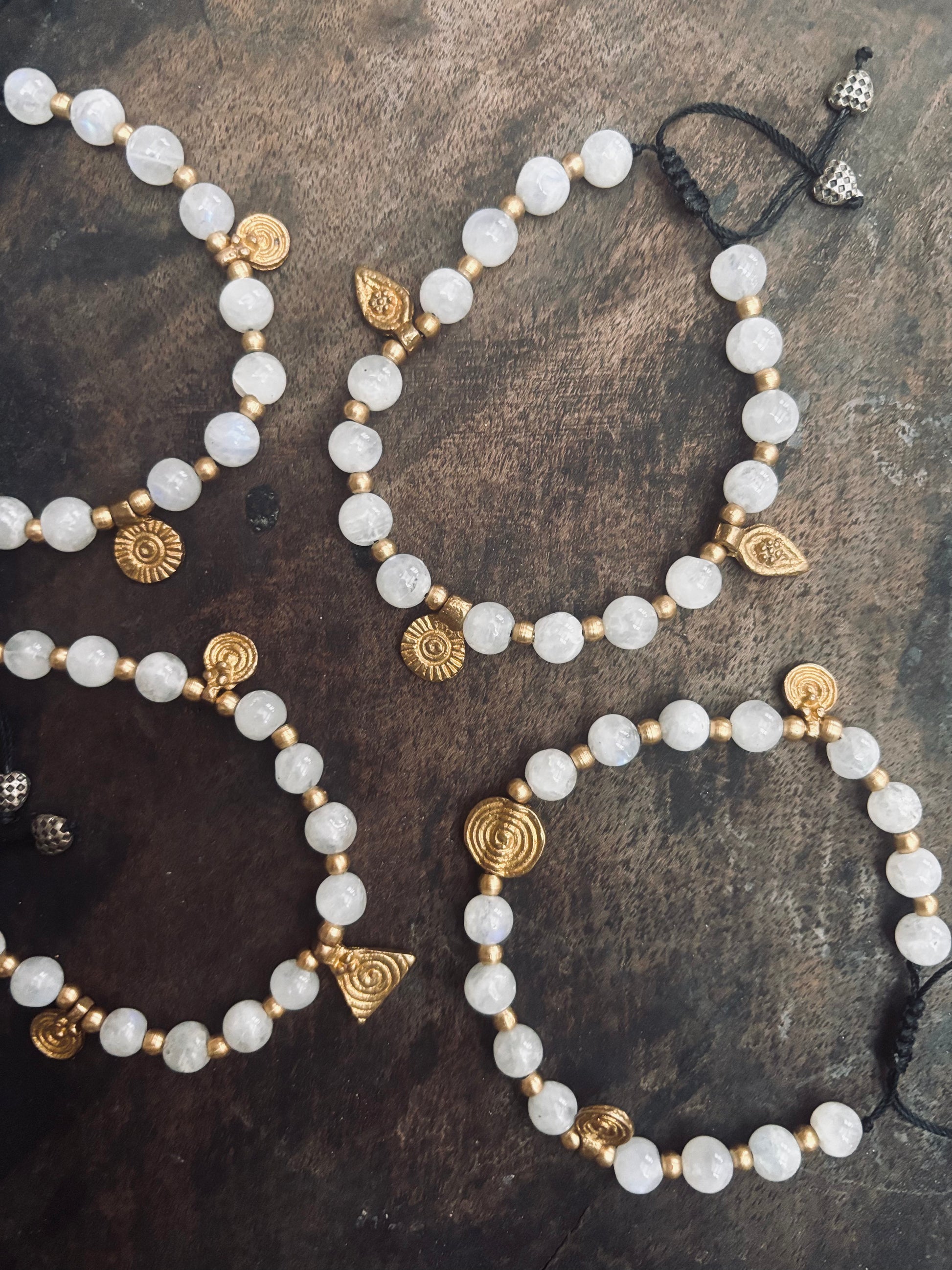 Ceremoni armband med Månsten, mässings pärlor samt smycke i mässing.