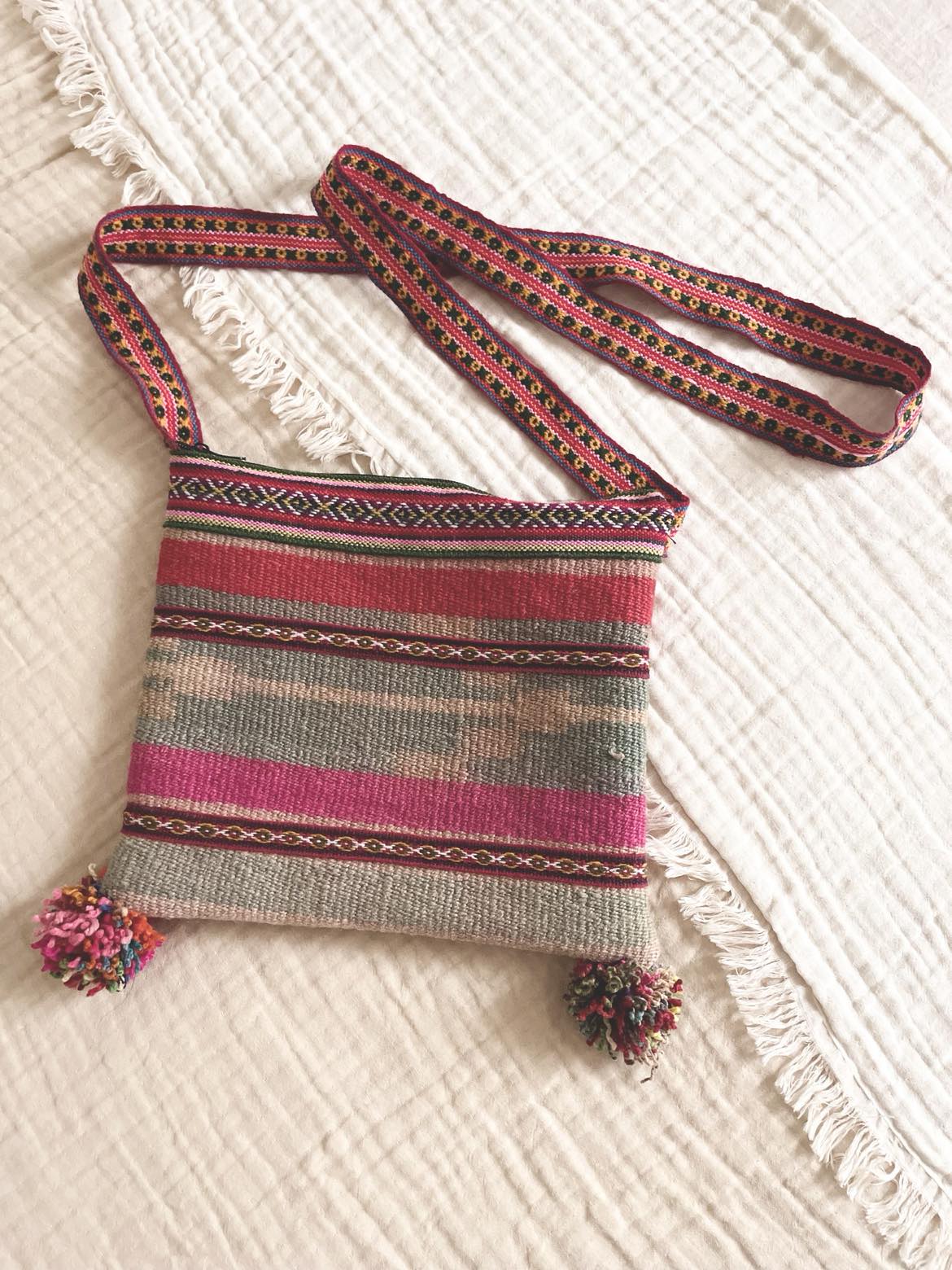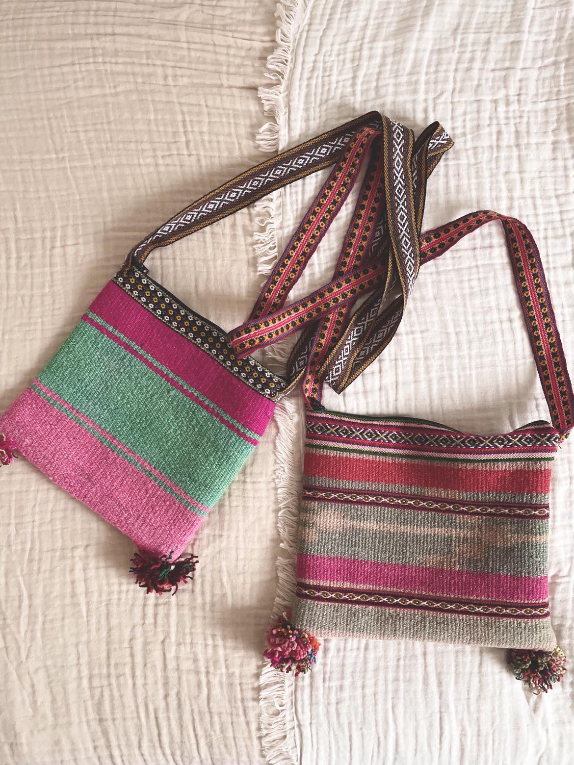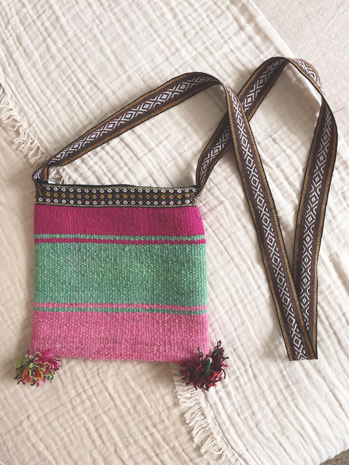 Väska med axelrem, stickad i vackra färger från Peru. Alla unika. Finns en av varje
