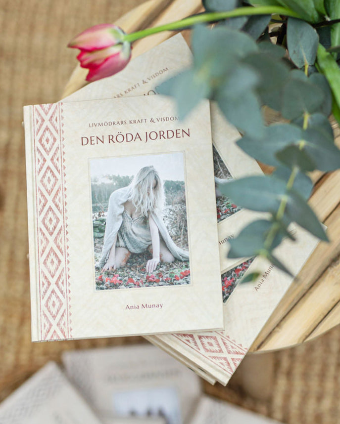 Den röda jorden är Ania Munays författardebut och den första delen i trilogin om Livmödrarnas kraft och visdom. Här vävs hennes personliga längtan efter- och kamp för kärlek och barn, ihop med hennes växande in i