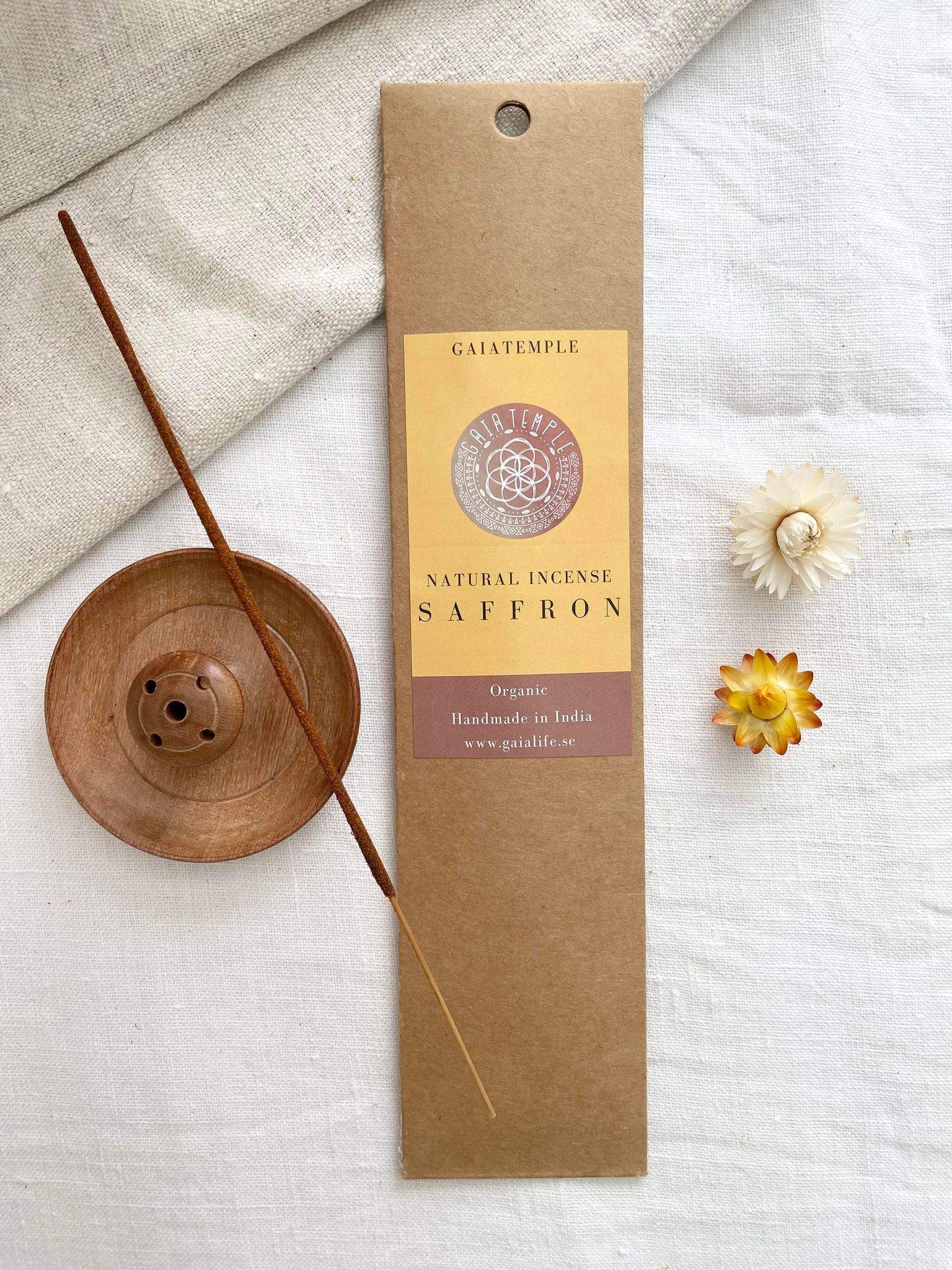 Denna rökelse höjer ditt sinne ur nedstämdhet och trötthet. Balanserar dina känslor. Den skapar lugn, stärker koncentrationen och tankeverksamheten. Saffran ökar sexlusten och passionen till livet.