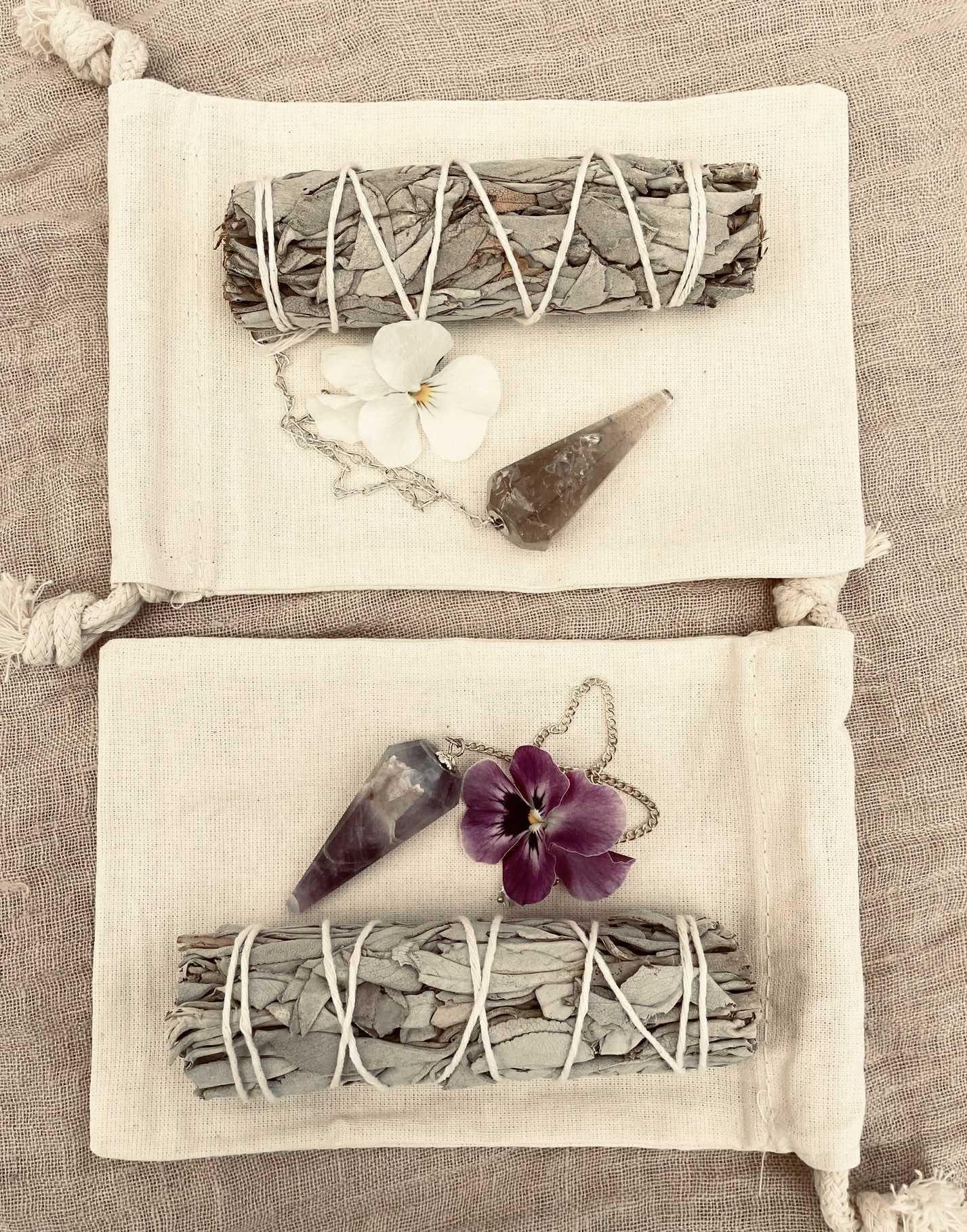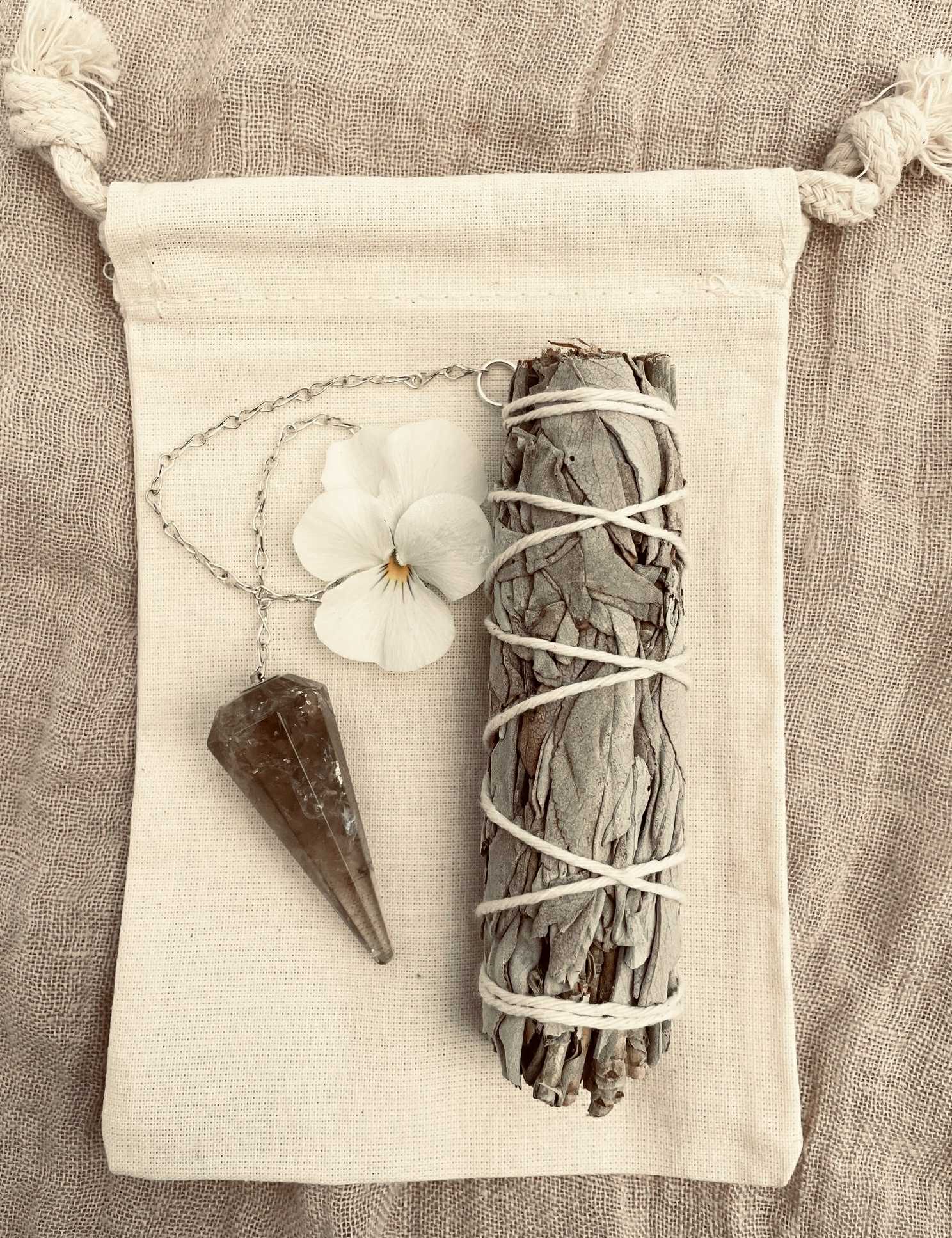 Ett kraftfullt pendelkit med rökvarts och salvia för rening, klarhet och vägledning