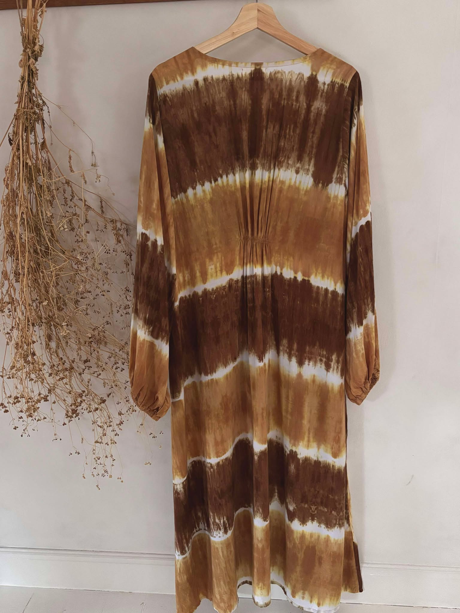 Underbar & skön klänning. V ringad med snör-detalj, liten smock resår fram & bak.