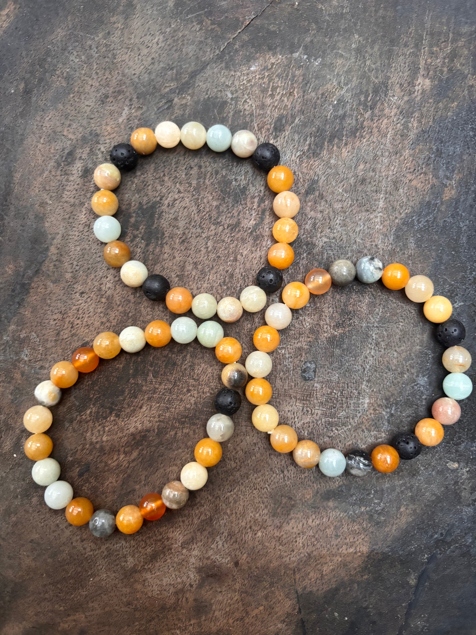 Agat i mjuka och jordade fÀrger, svart lavasten och rosenkvarts