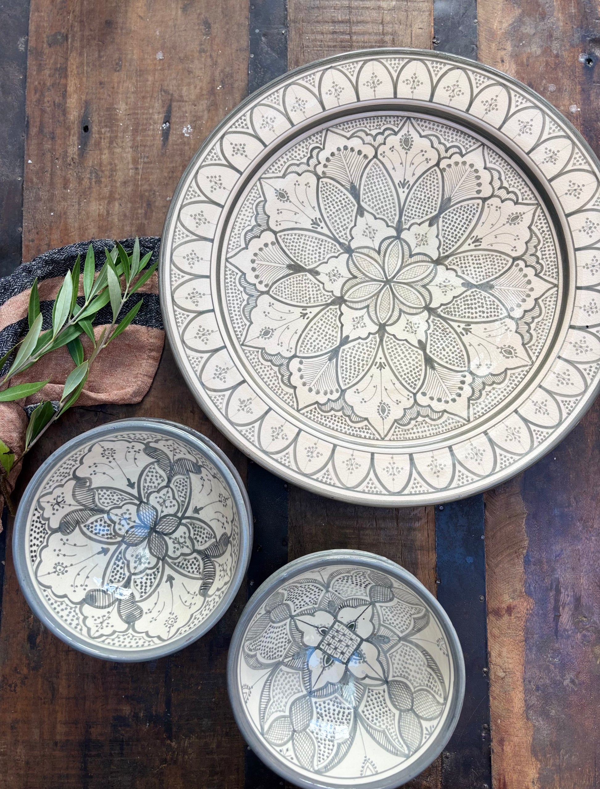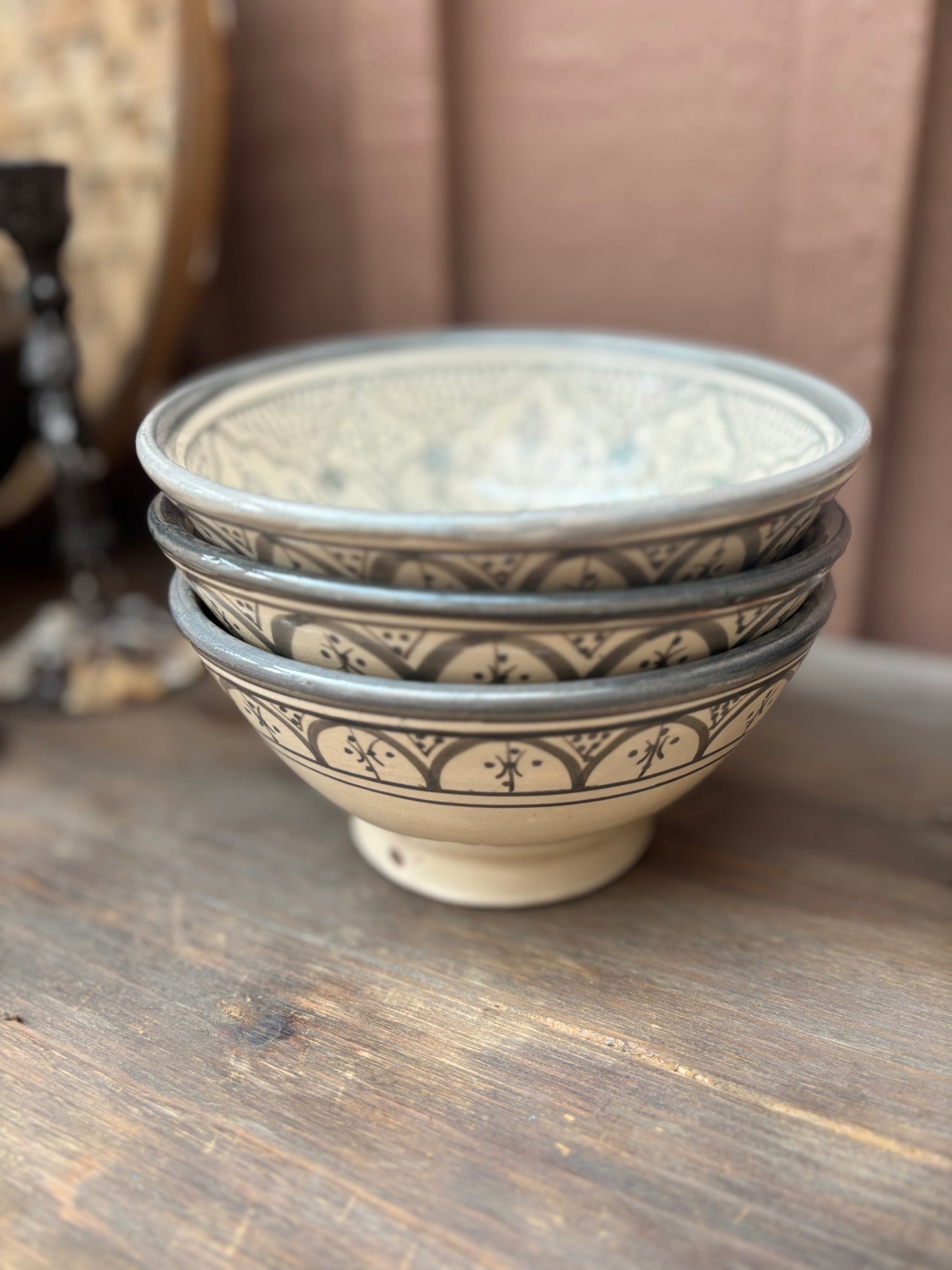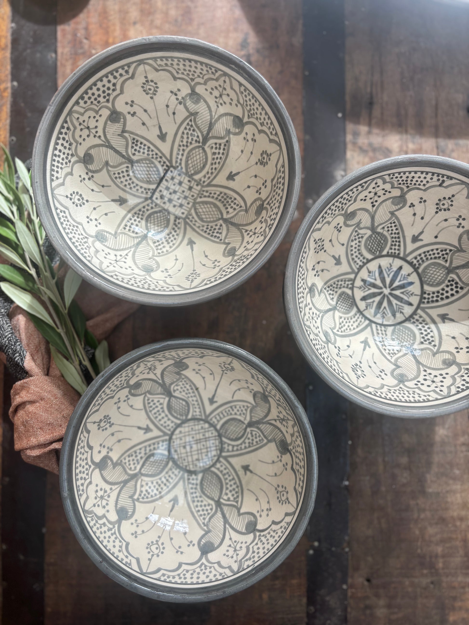 Marockansk skål med handmålat grafiskt och traditionellt mönster.