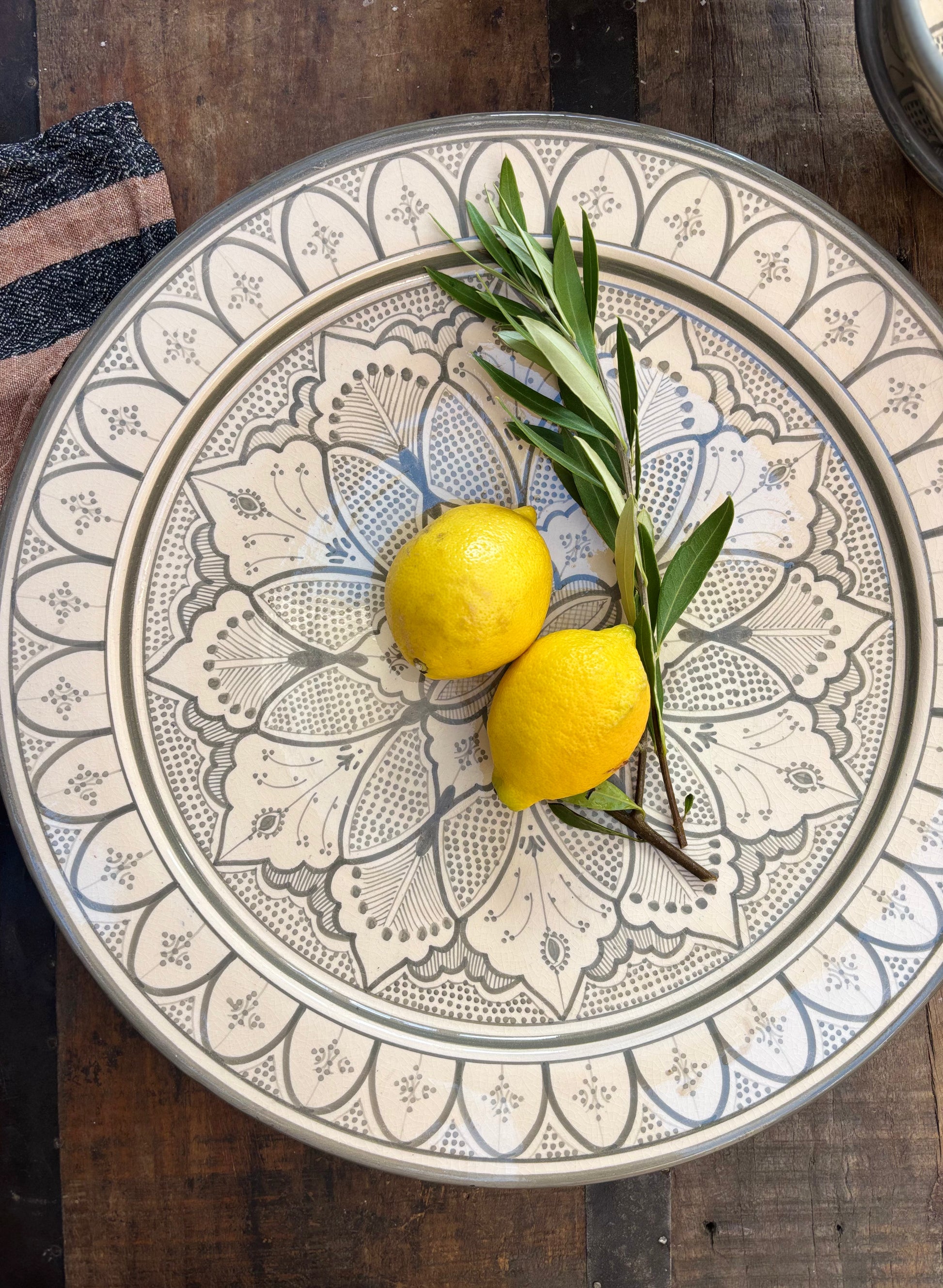 Stort handgjort marockanskt fat målat i ett vackert mönster.