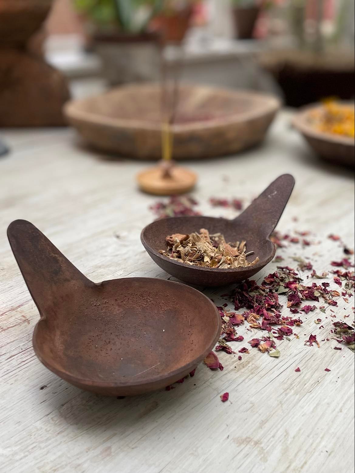 En robust rökelsehållare i järn, avsedd för att bränna rökelse, salvia, kol och hartser.